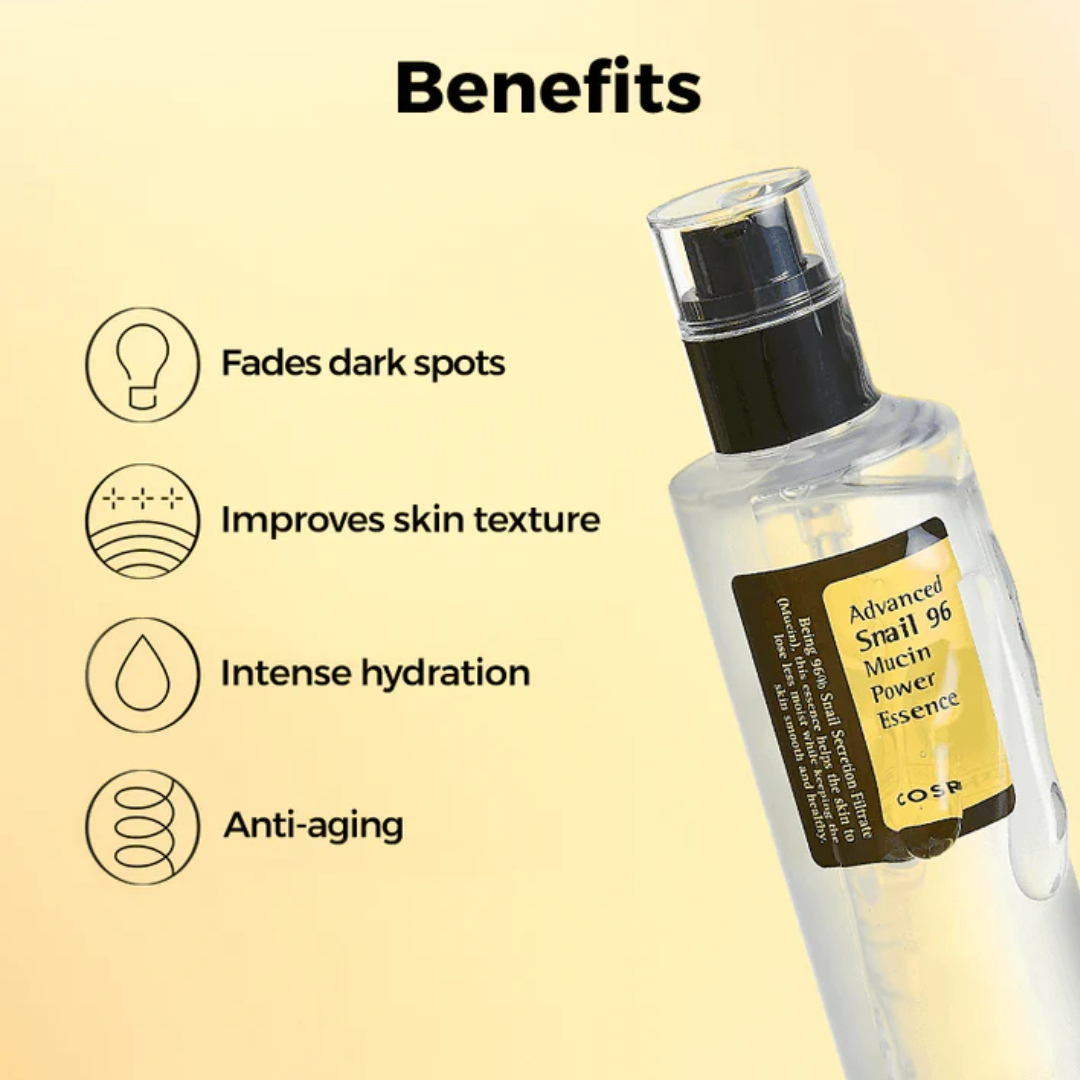 مُدعّم بمكونات مُعزّزة للبشرة بنسبة 96% من مُرشّح إفرازات الحلزون