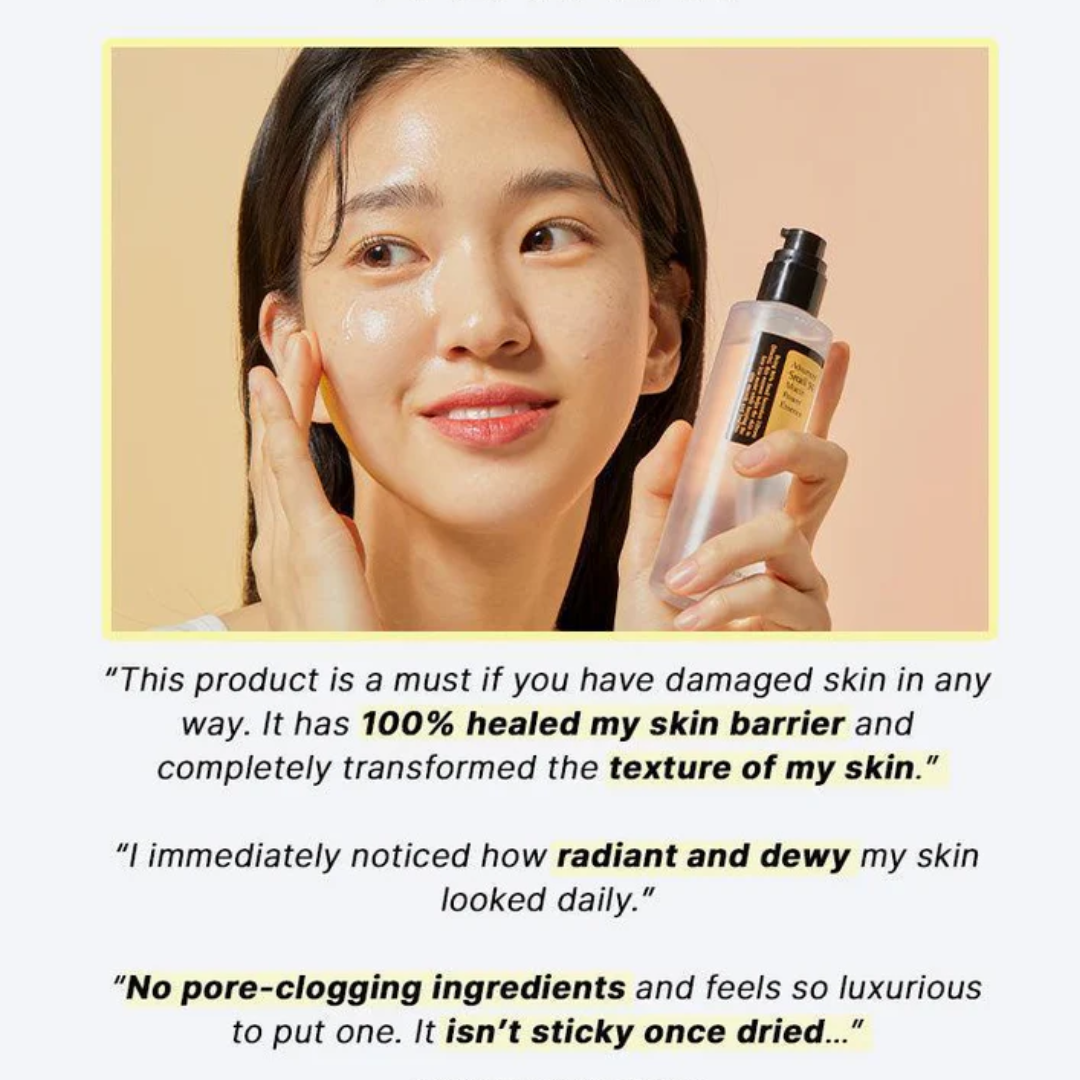 خلاصة خفيفة الوزن، تمتصها البشرة بسرعة لتمنحها إشراقة طبيعية من الداخل. صُنعت هذه الخلاصة من مخاط الحلزون المصفى والمغذي قليل التحفيز، للحفاظ على ترطيب بشرتكِ وإشراقتها طوال اليوم.