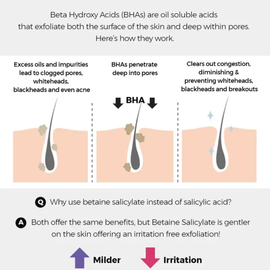 سائل تقشير BHA والنياسيناميد لتقشير لطيف والتحكم في إفراز الدهون. مناسب للبشرة ذات المستوى المتوسط من الحموضة.